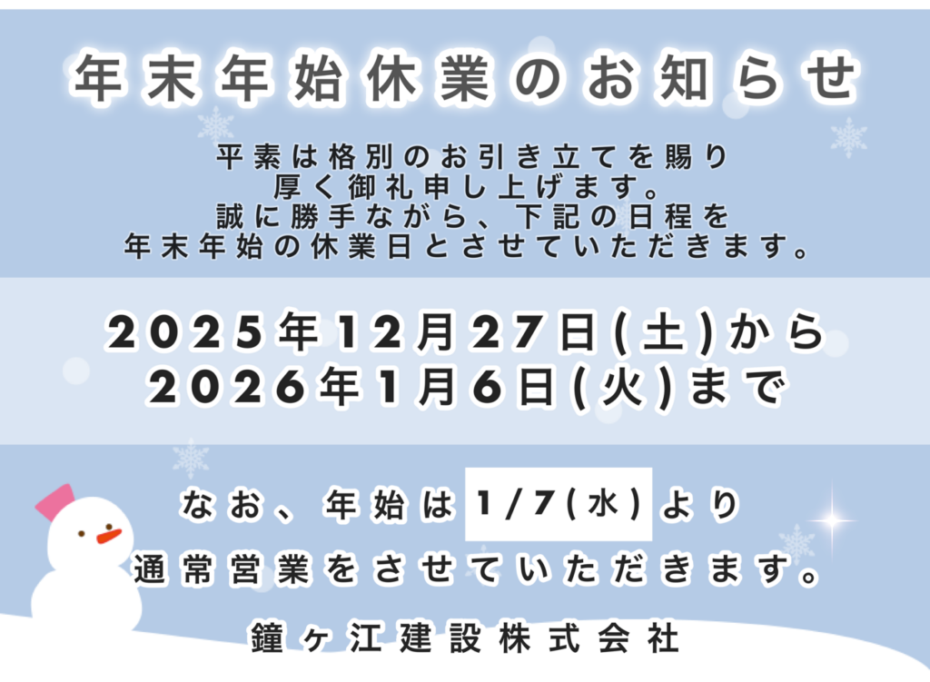 年末年始休業のお知らせ